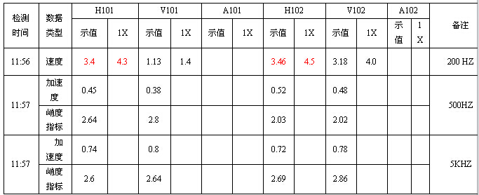 2015年3月28日,我們對循環風機電機的振動情況進行了測量,檢測報告如下: